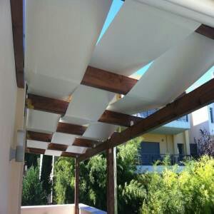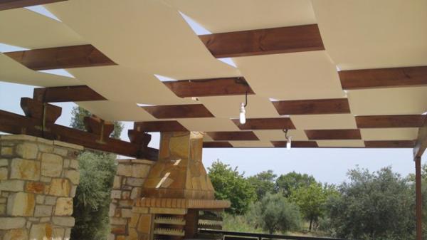 πέργολα με ξύλο και πανί